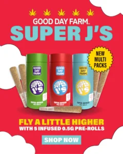 Double the fun with 2 GDF Infused Super J’s Multi Packs for $69! While supplies last. Select items only. Product availability may vary by location. Ask your budtender for details.